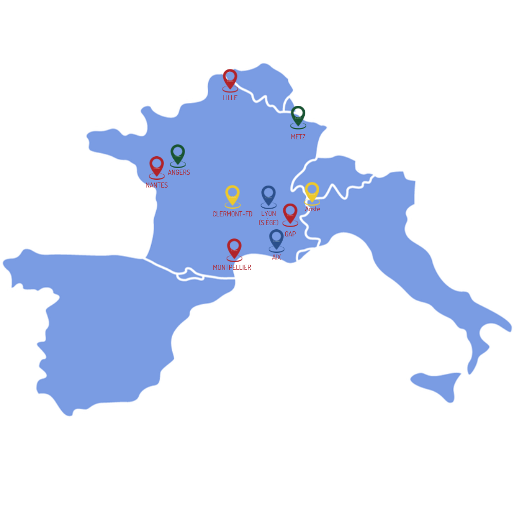 Cilea dispose de 7 agences réparties sur l’ensemble du territoire français : Lyon, Aix-en-Provence, Angers, Gap, Lille, Metz et Nantes.